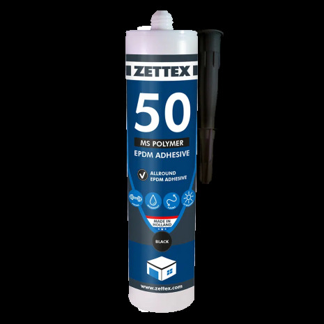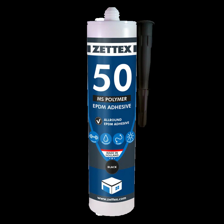 Zettex MS 50 EPDM Sealer är en högpresterande, permanent elastisk lim- och tätningsmassa speciellt utvecklad för all typ av EPDM. Produkten kan appliceras både på amerikansk och europeisk EPDM utan behov av primer – även på fuktiga ytor. Den lämpar sig utmärkt för montering, tätning och reparation av EPDM-material och erbjuder stark vidhäftning och lång hållbarhet både inom- och utomhus.