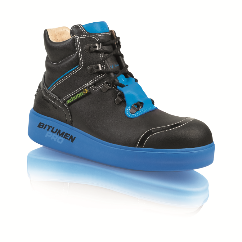 Bitumen Pro är den ultimata yrkesskon framtagen för arbete på varm asfalt och andra extrema högtemperaturmiljöer. Den specialutvecklade DUO-SOFT-ASPHALT-sulan erbjuder exceptionell värmeisolering och klarar temperaturer på 140–150 °C, samtidigt som den släta, profilfria designen gör det enkelt att ta bort tjära och bitumenrester. Med låg vikt, optimal rullning och mjuk dämpning får användaren maximal komfort – hela arbetsdagen.