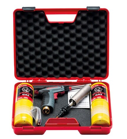 Detta är ett oumbärligt verktyg för detaljarbete, genomförande och reparationer av tätskikt, särskilt vid besiktning av tak där användningen av öppen låga är förbjuden. Med detta verktyg arbetar man med varmluft som genereras av gasol.